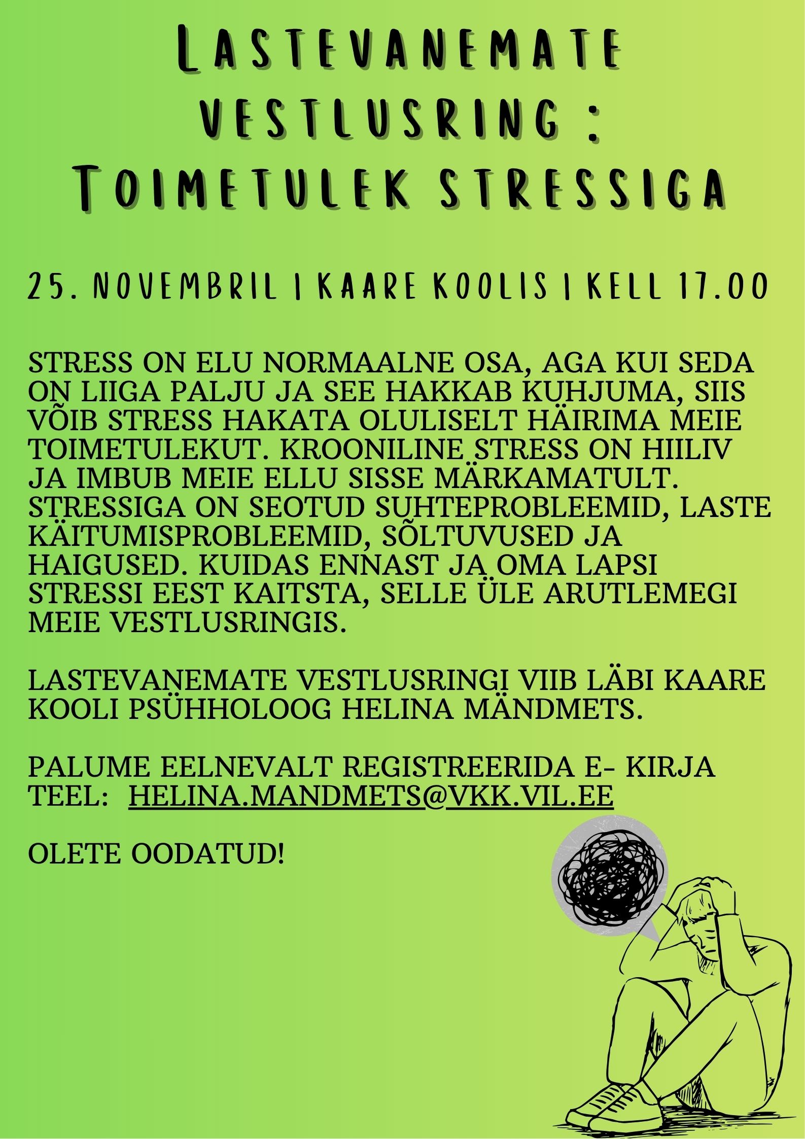 Meie psühholoog Helina Mändmets ootab lapsevanemaid vestlusringi.