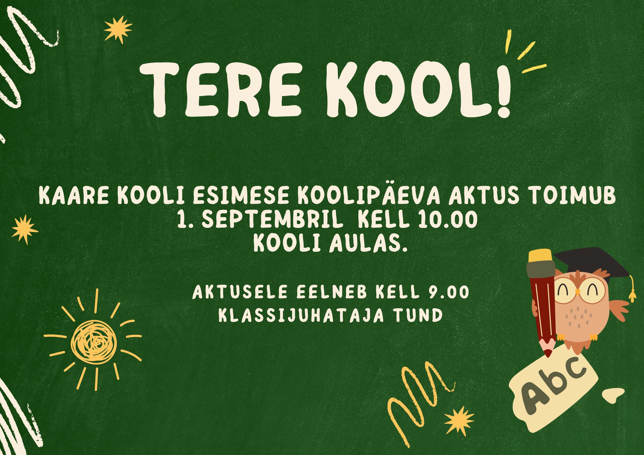 Kaare Kooli esimese koolipäeva aktus toimub 1. septembril kell 10.00, kooli aulas.