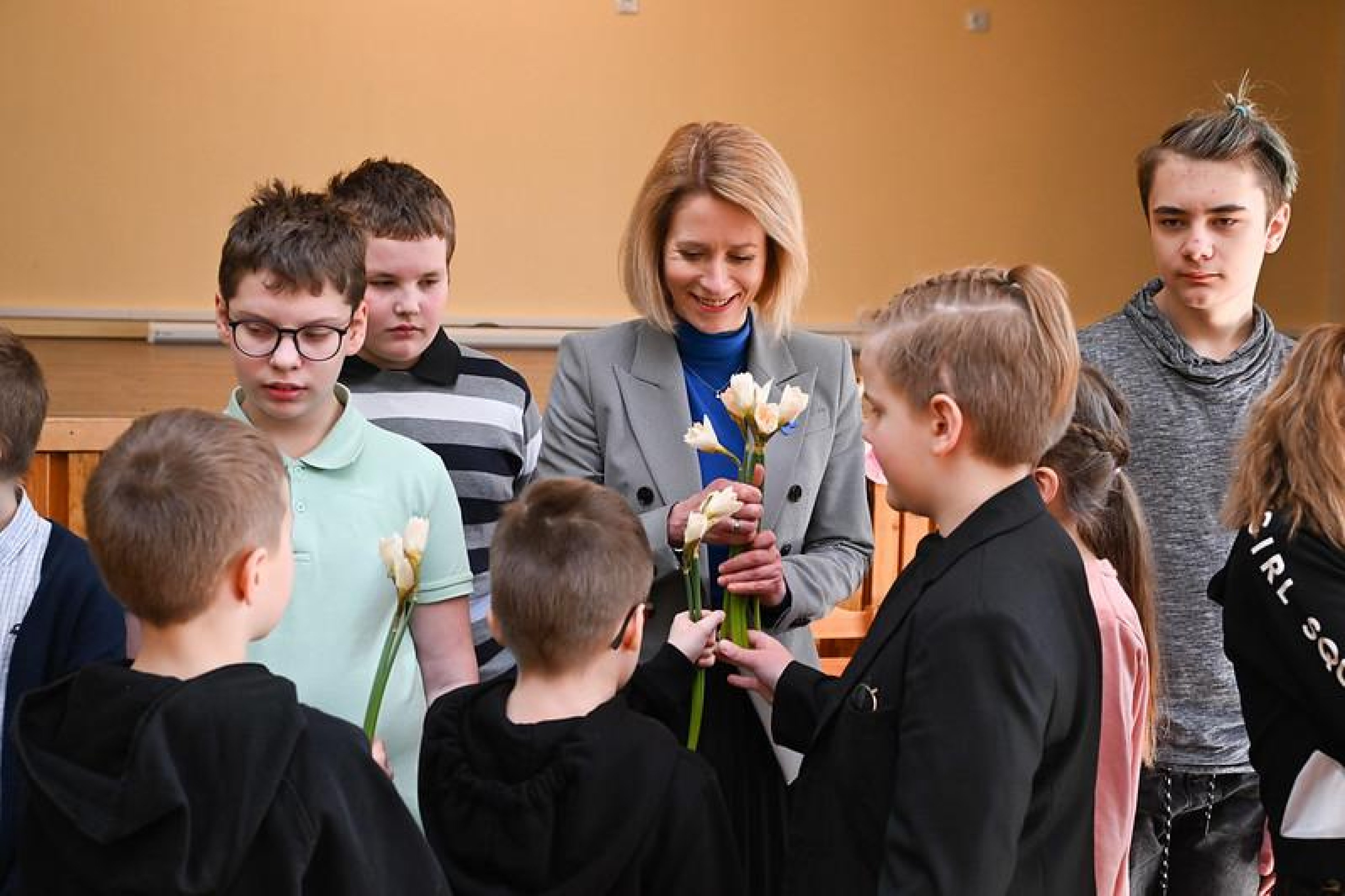 6b klassi õpilane Lisete Siimon oli väärikas õpilasgiid, kes tutvustas meie kooli, meie väärtusi. Tegime koos peaministriga koolimajas ringkäigu. Külastasime paar tundi, näitasime oma õpilaste ühistööna valminud Kevade ja Talve raamatuid.